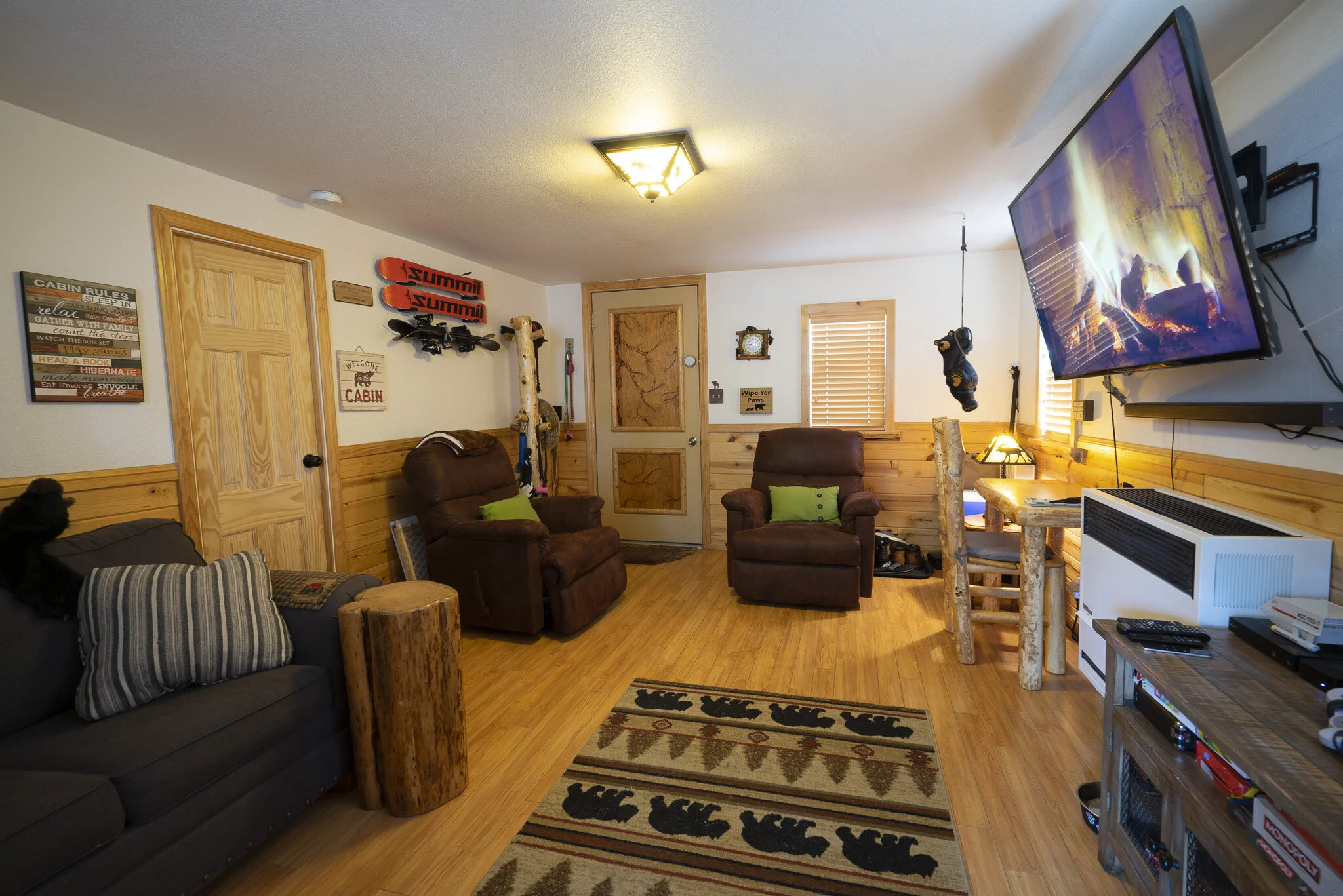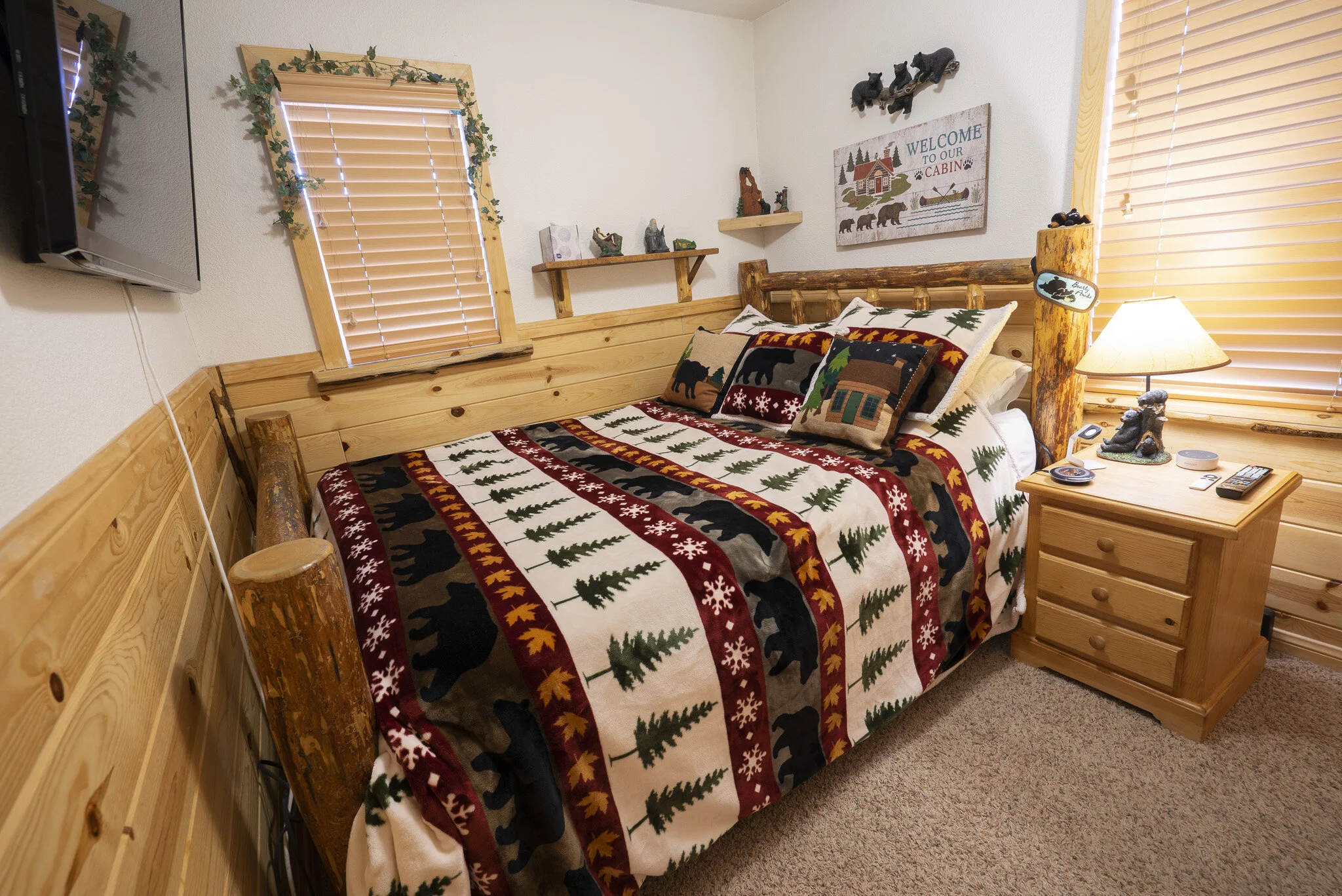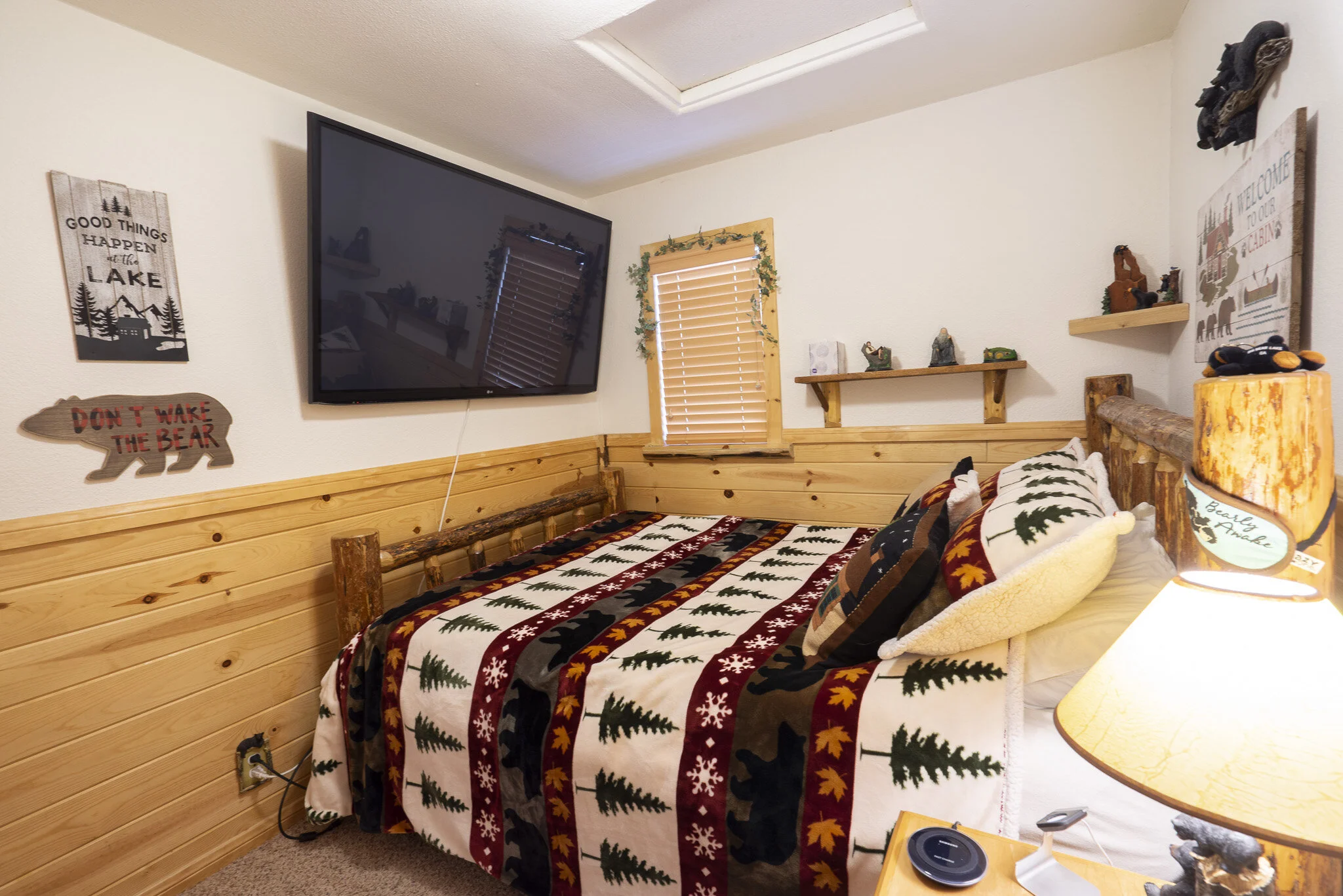 Bearly Home, a cabin in the woods, two bedroom one bath vacation home that we open up to you as we are "bearly" there. It's a woodsy but modern bear themed cabin with high tech amenities and a fully fenced private back yard for humans and pets.
