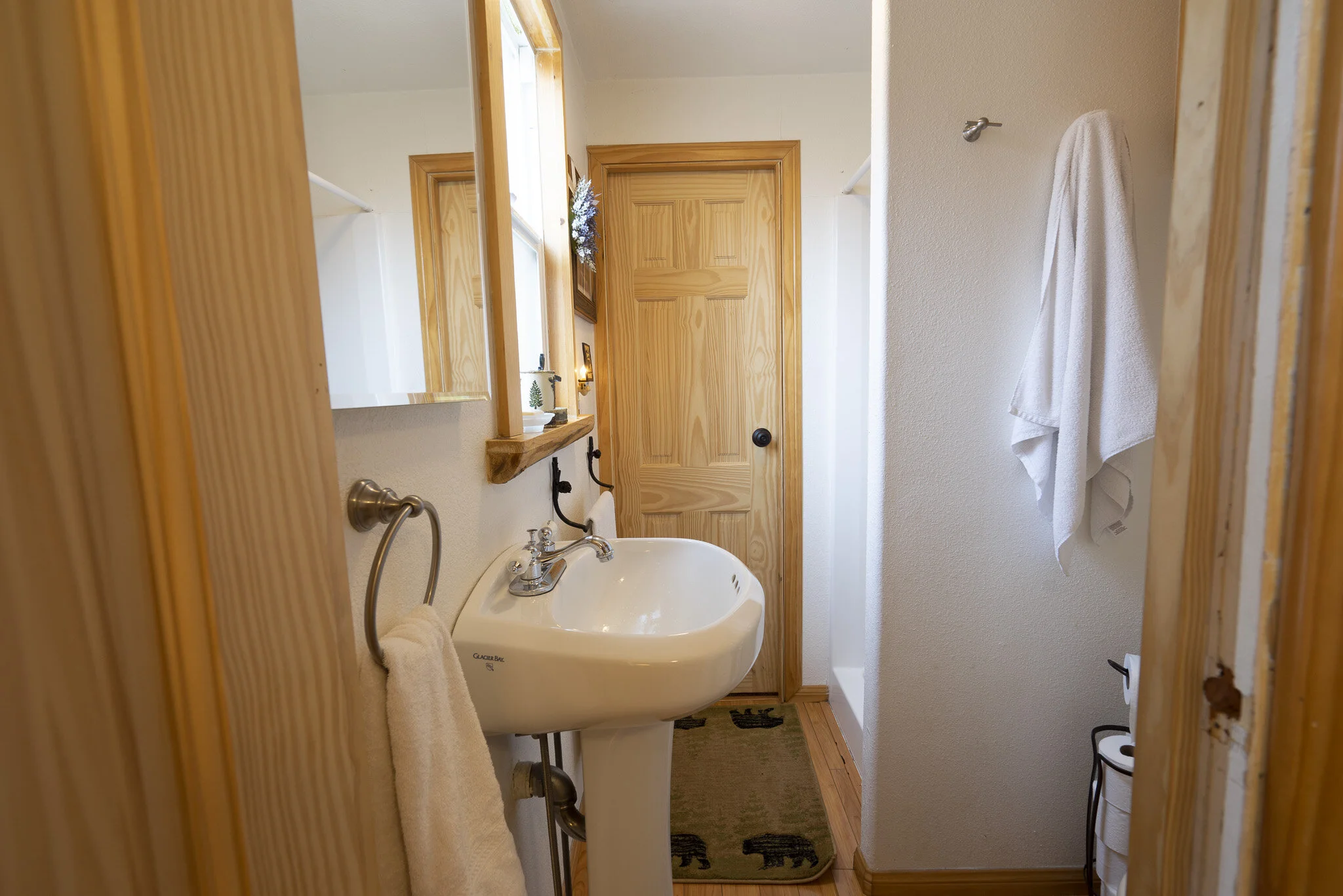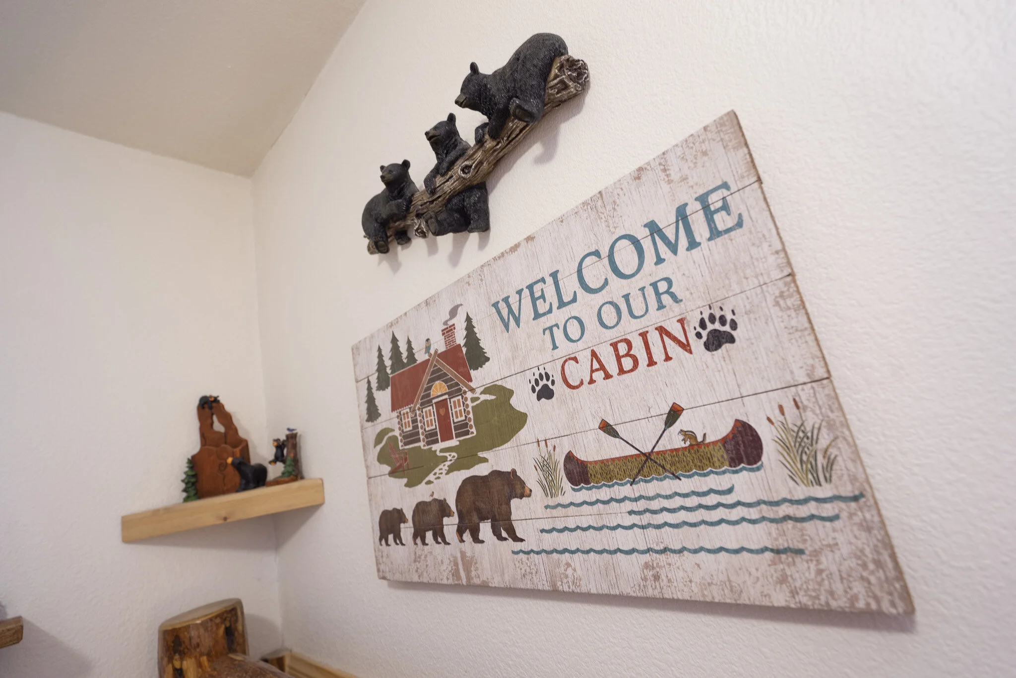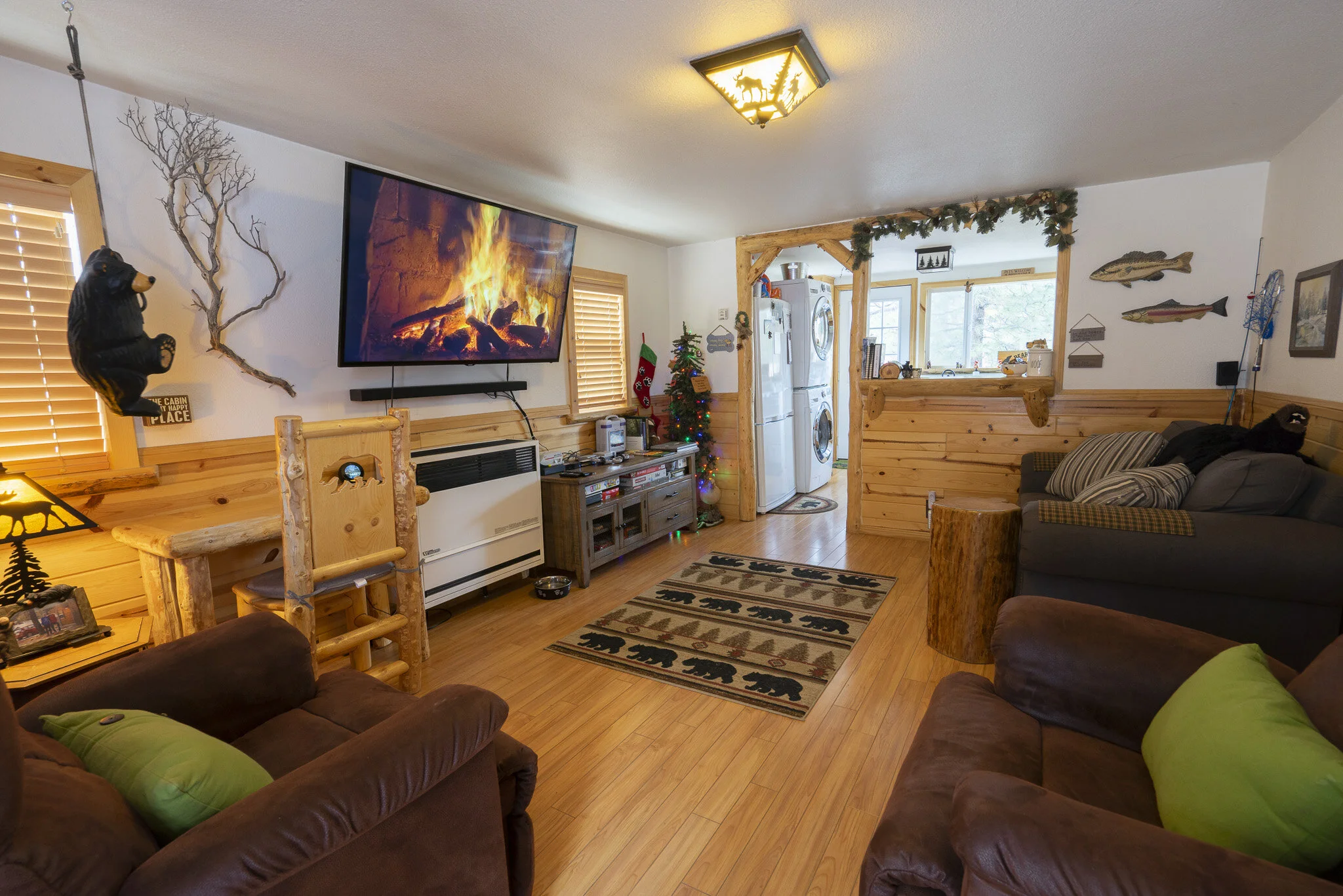 Bearly Home, a cabin in the woods, two bedroom one bath vacation home that we open up to you as we are "bearly" there. It's a woodsy but modern bear themed cabin with high tech amenities and a fully fenced private back yard for humans and pets.